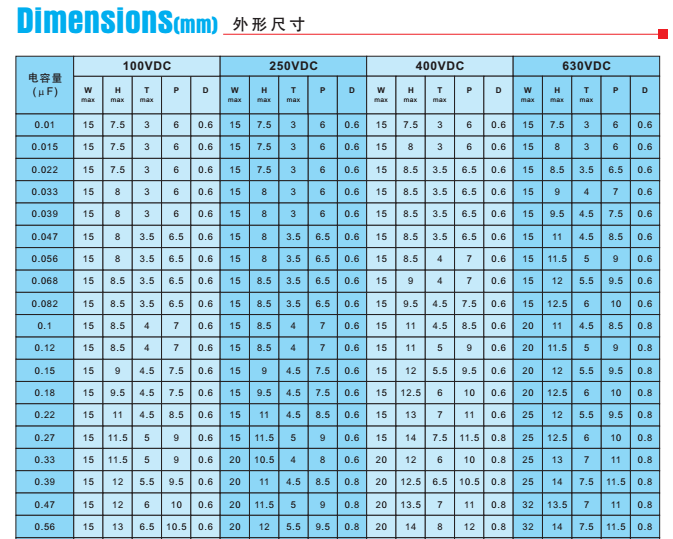 型 號:CBB20 容量范圍:0.010μF~10μF |