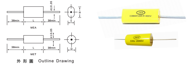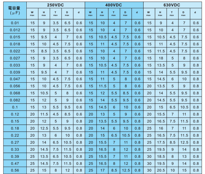 型 號:CBB20 容量范圍:0.01μF~0.47μF |