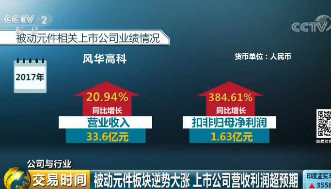 風(fēng)華高科2017年?duì)I業(yè)收入33.6億元,同比增長(zhǎng)20.94%;扣非歸母凈利潤(rùn)1.63億元,同比增長(zhǎng)384.61%。
