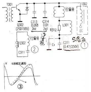 設(shè)置在視放電路中,用于關(guān)機(jī)時(shí)消除顯像管上殘余亮點(diǎn)的電容。