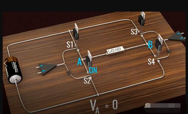 讓我們構(gòu)建一個(gè)有趣的電路,如圖所示,其中包含四個(gè)開(kāi)關(guān)和一個(gè)輸入電壓,該電路稱(chēng)為全橋逆變器。