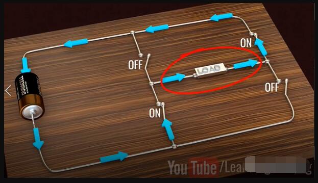 現(xiàn)在,只需進(jìn)行相反的操作并觀(guān)察電流。顯然,在這種情況下,電流流動(dòng)是相反的,負(fù)載兩端的輸出電壓也是如此。以上,就是產(chǎn)生方波交流電的基本原理。